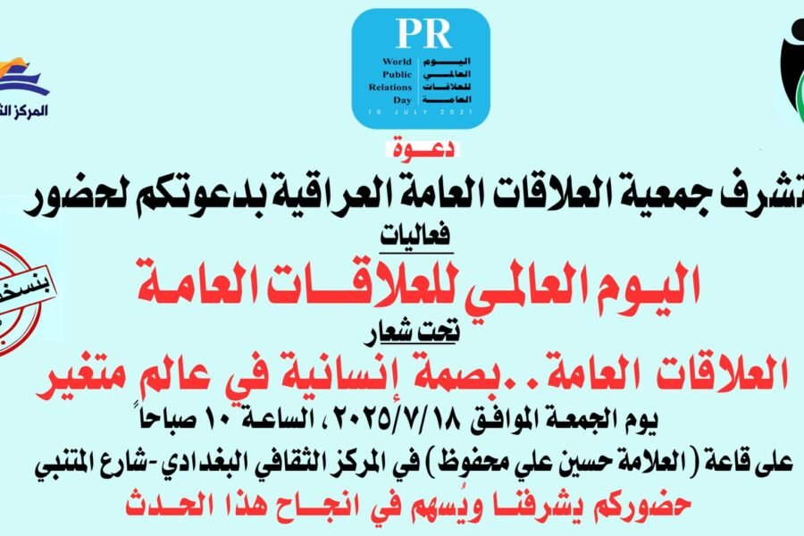 دعوة حضور جمعية العلاقات العامة العراقية فعاليات اليوم العالمي للعلاقات العامة جمعية العلاقات العامة العراقية فعاليات اليوم العالمي للعلاقات العامة